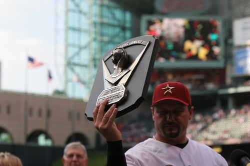 April 22, 2005 Clemens Cy Young Roger Clemens holds up his 7th Cy Young Award Share this: Share on Facebook (Opens in new window) Facebook Share on X (Opens in new window) X Like Loading... Related